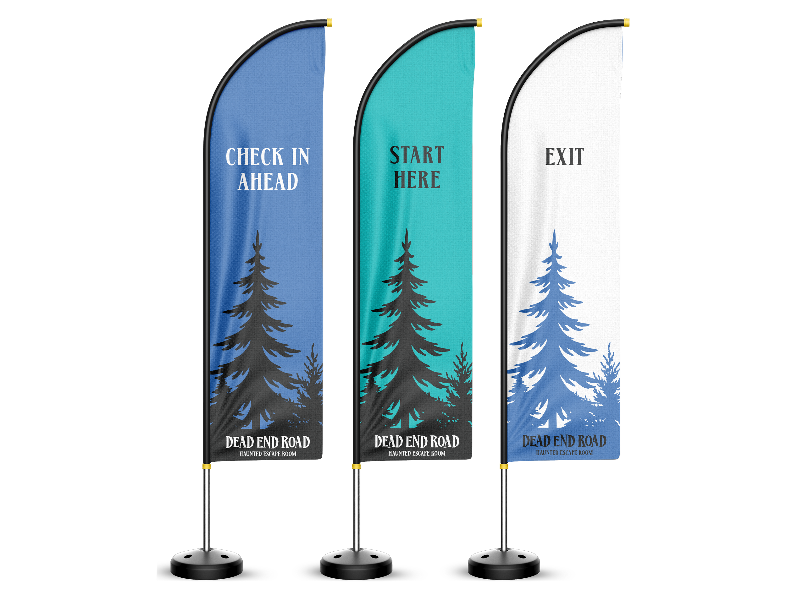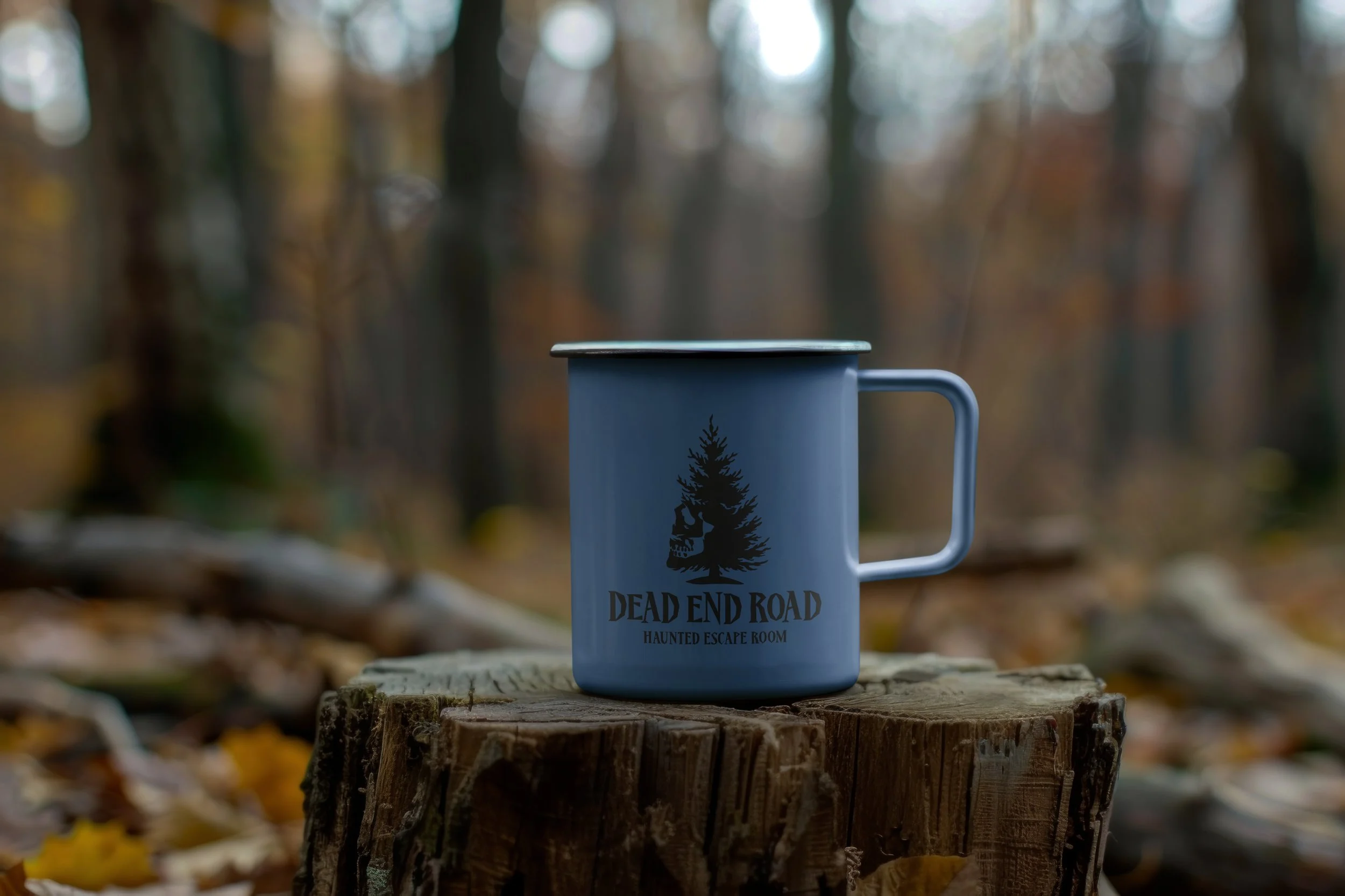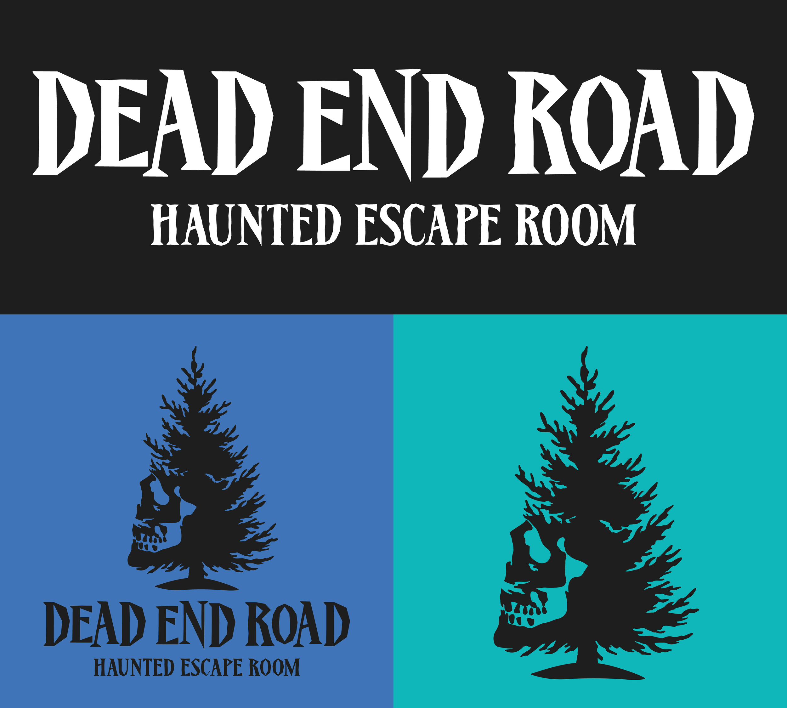 The final logo system balances simplicity and storytelling. The primary wordmark uses sharp, haunting typography that feels weathered and unsettling, while the supporting icon, a skull hidden within a pine tree silhouette, reinforces the themes of mystery, danger, and the forgotten town setting. Together, these elements position Dead End Road as an immersive haunted escape room experience designed to attract adventurous Denver locals seeking thrilling and mysterious experiences. The final identity feels cohesive, intentional, and atmospheric, bringing the story of the brand to life through visuals that lure visitors down a path they may not escape.